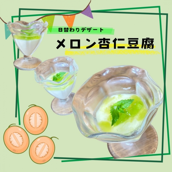 【メロン杏仁豆腐】日替わりデザートは、【メロン杏仁豆腐】です🫶💗濃厚杏仁と、メロン...